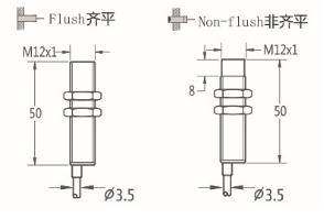 Thread size / 螺紋尺寸: M12屏蔽式 / M12非屏蔽式