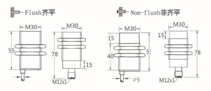 Thread size / 螺紋尺寸: M30 屏蔽式 / M30 非屏蔽式