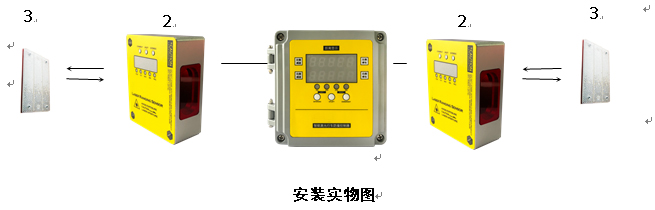 1、激光傳感器安裝在天車兩側,控制器主機安裝在駕駛室內。