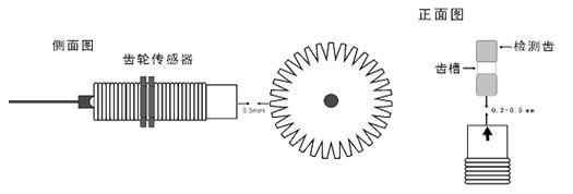◆ 安裝時傳感器的方向標志線及檢測面要正對齒輪的中心。